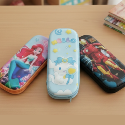 A Cartoon Geometry Box is a sturdy pencil case that comes with fun and colorful cartoon prints. It is specially made for children who enjoy keeping their stationery safe in a stylish way. Unlike regular pencil boxes, cartoon geometry boxes come with premium zippers, durable material, and extra storage space.